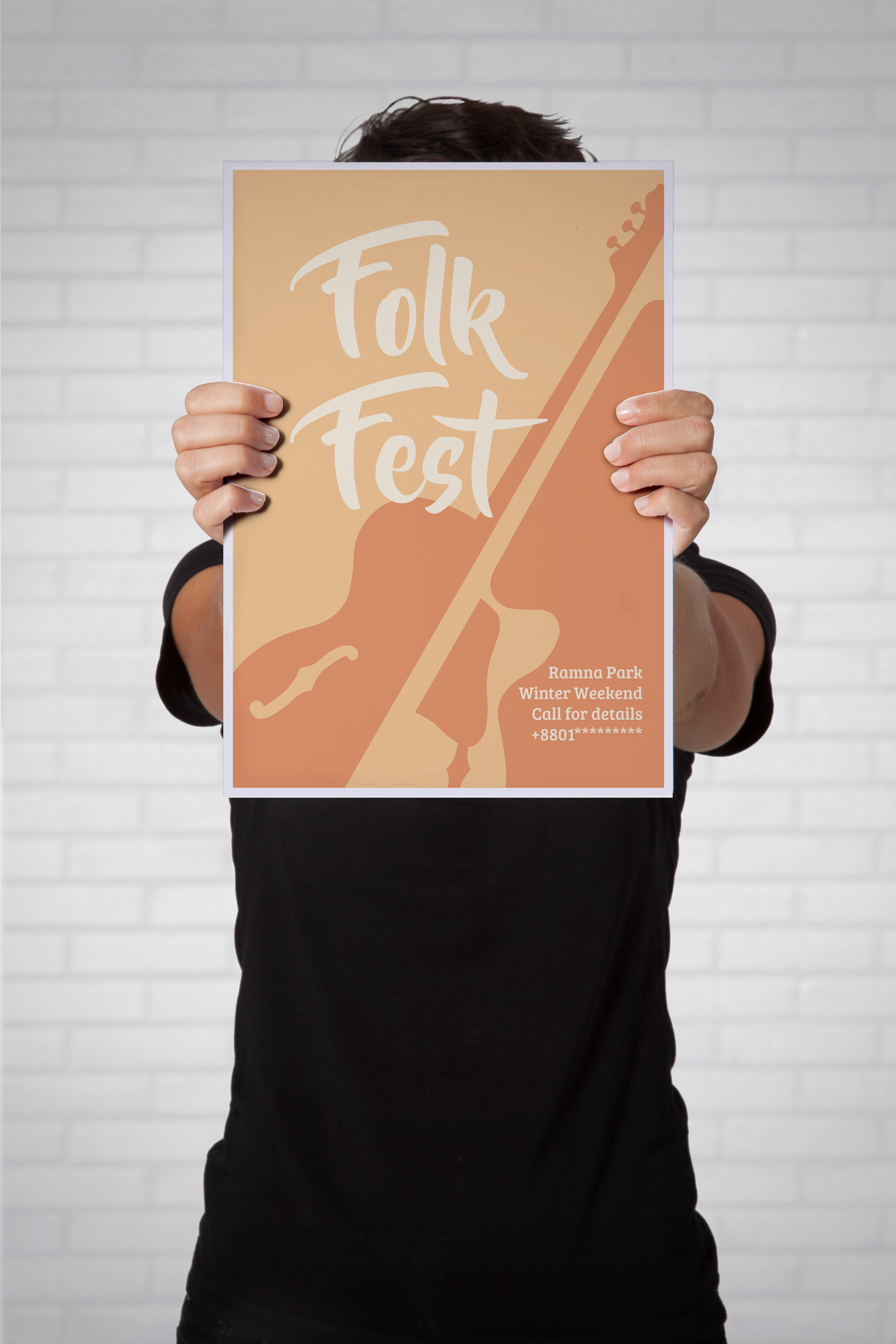This poster design was created from scratch for a fictional folk music event, Folk Fest. The goal was to capture the warm, cozy, and organic vibe of traditional folk gatherings through color, form, and typography.