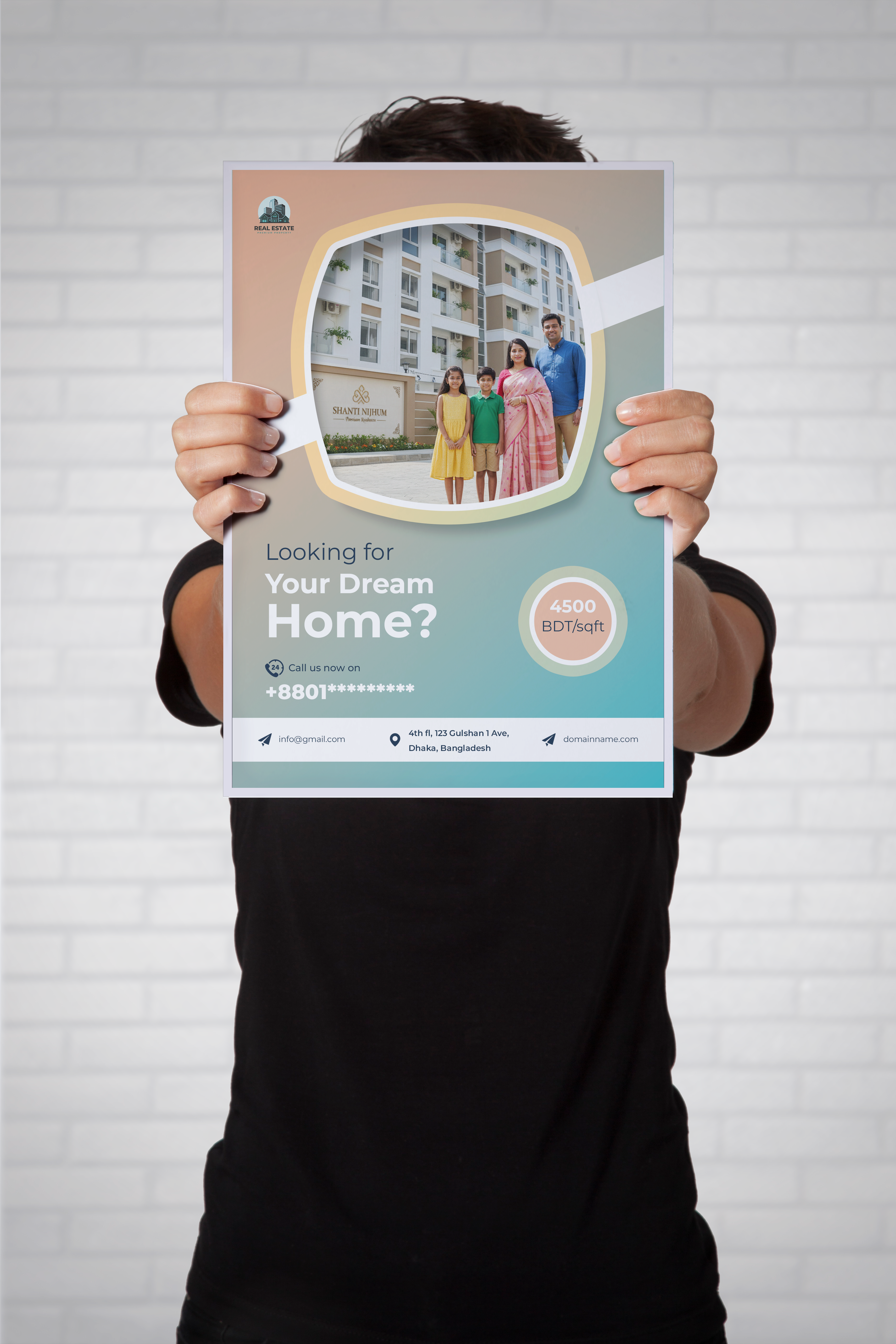 A clean and modern real estate poster designed in Adobe Illustrator to promote a premium residential property. Focused on warmth, trust, and family comfort — blending professional aesthetics with emotional appeal.